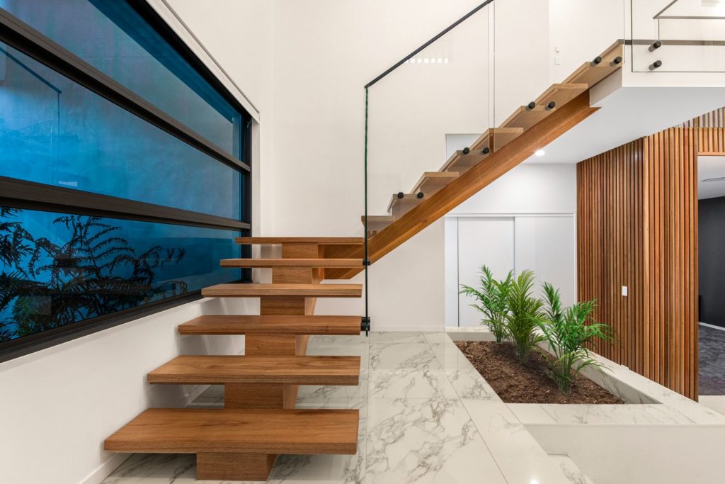 This custom built Buderim home has stunning street appeal with its tiled feature wall, knotwood aluminium screening and standing seam Colourbond elements. The magnificent entry is complemented with a two-storey void with highlight louvre windows. Indoors, there is a seamless inside outside flow with the use of a corner stacker, leading out to the pool which has been placed in the northern aspect of the block to best capture the beauty and tranquillity of the surrounds.